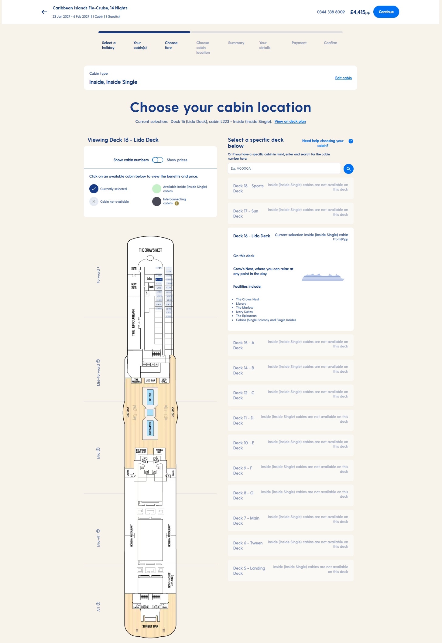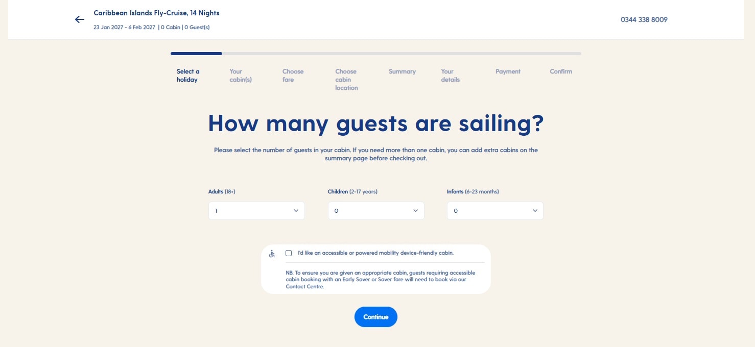 You can then continue with the rest of your booking. For more help on the next steps of the booking journey, see our article How to book a P&O Cruises holiday.