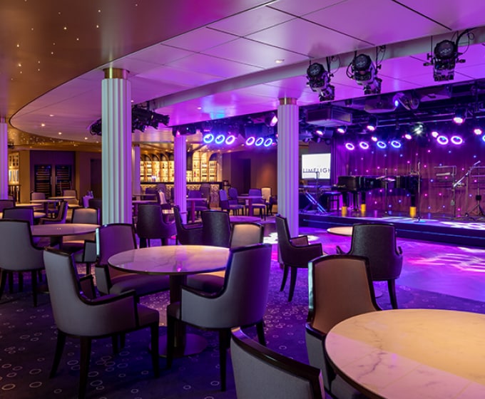 Exclusively for adults, The Limelight Club combines exquisite cuisine with incredible live entertainment. Savour a tantalising à la carte menu featuring international flavours. From pre-dinner drinks and light bites to show-stopping performances and late-night cocktails, The Limelight Club promises an unforgettable evening of culinary delights and dazzling entertainment at sea.